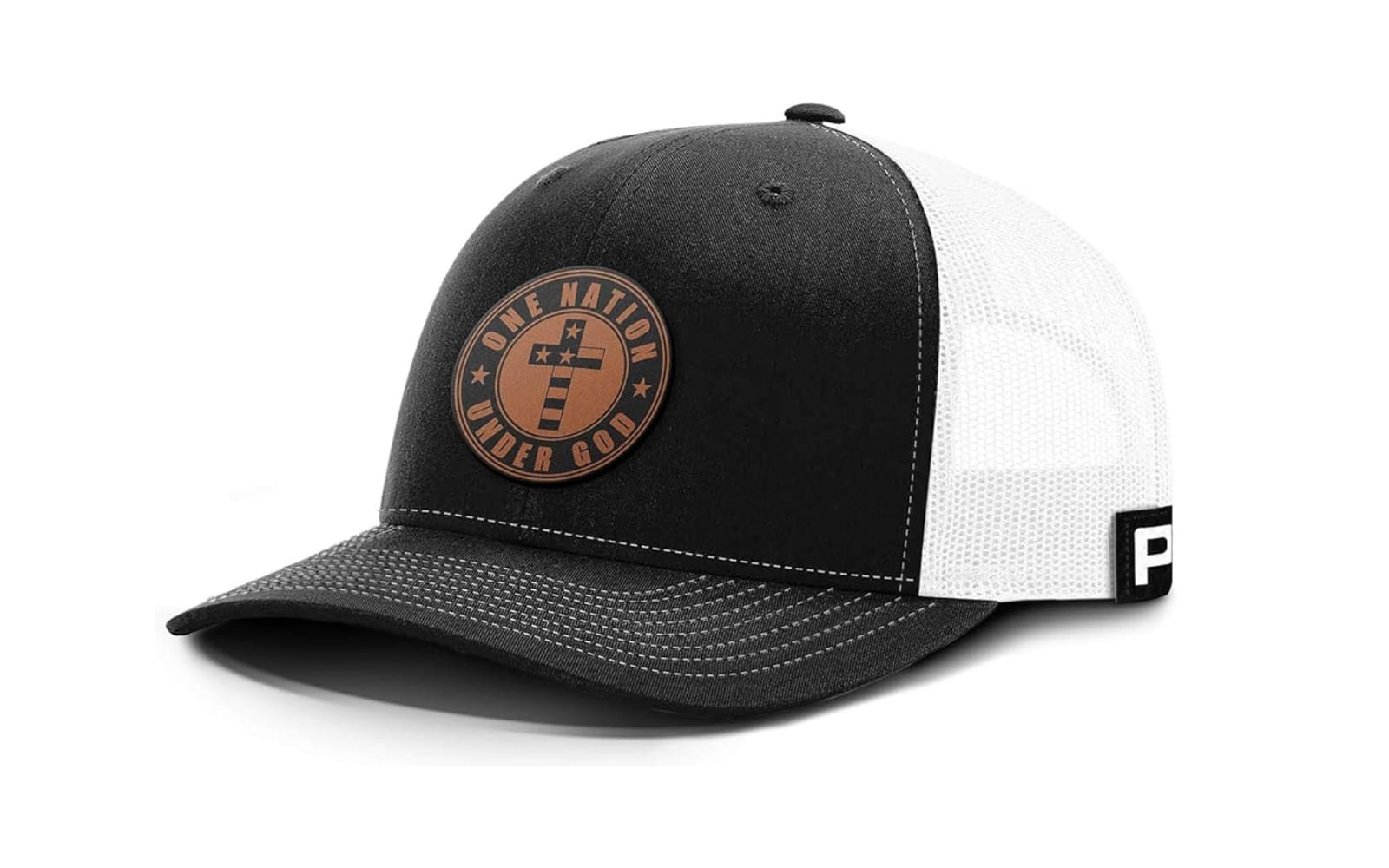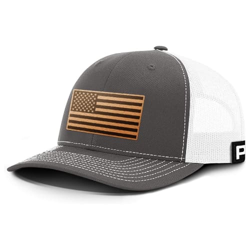 This rugged, mesh-back cap features a high-quality leather patch engraved with the American flag, making it a top choice for those who want to display their patriotism with a durable, handcrafted accessory.